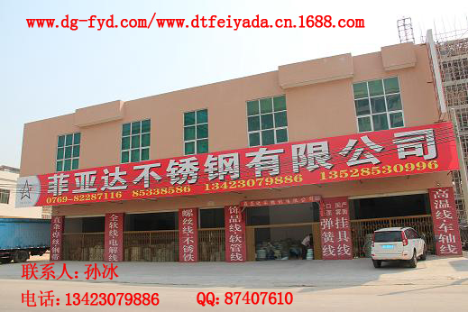【東莞市菲亞達不銹鋼材料店】是菲亞達不銹鋼廠在國內有多個直銷部之一,主要銷售各種材質的不銹鋼線材,包括不銹鋼硬線、不銹鋼中硬線、不銹鋼軟線;店鋪平均每月月銷售量達三百多噸,服務上千家企業,經過客戶實際使用檢驗,菲亞達公司所生產銷售的不銹鋼線材質量全部達到國家檢驗標準。二十多年來,菲亞達只專注于不銹鋼線材的生產經營經過長時間經驗積累和研究,樹立了在不銹鋼行業的領先地位。